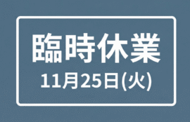 11月3日(月・祝)文化の日ですが、通常通り営業いたしま…